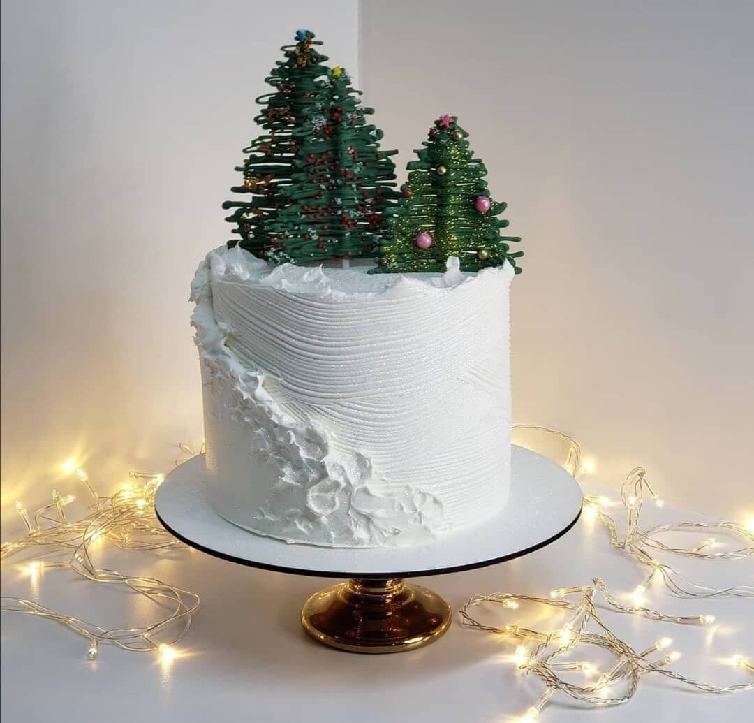 Зимняя, снежная и лесная атмосфера всего лишь с помощью одного поздравительного тортика!